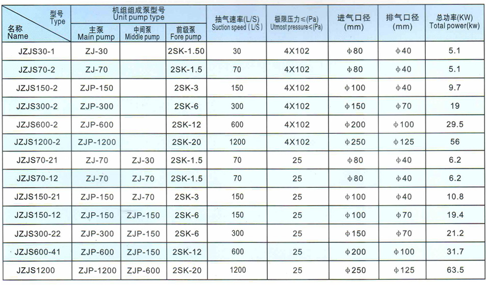 JZJS型系列真空機(jī)組以水環(huán)泵作為前級(jí)泵,該機(jī)組性能特別適應(yīng)于抽除含有大量的水蒸汽帶有一定腐蝕性和可凝性氣體的工藝流程,該機(jī)組質(zhì)量可靠、性能穩(wěn)定、已裝配電控制系統(tǒng),旁路管、益流閥,技術(shù)參數(shù)為4x102與10?,該機(jī)組適用于真空蒸溜、濃溜、脫水結(jié)晶、干燥以及電力容器、變壓器制造等單位使用。